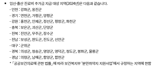 - 분만취약지역(2024년 기준)은 아래와 같습니다.